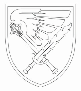 У полі “червоного (марунового)” щита срібне крило хижого птаха, нижче якого схрещені золоті пернач і “полум’яний” меч. Кант щита – срібний. Впадають у вічі два моменти. По-перше, в описах емблем частин ДШВ і надалі вживають слово “маруновий”, яке є мовним покручем і калькою з англійського “maroon”. Зрештою, президентський указ від 21 листопада 2017 р. № 379 встановив кольором полотнища прапора ДШВ і штандарта їхнього командувача темно-бордовий, а не “маруновий”. Про це вже писалося – як водиться, без наслідків[2]. По-друге, “полум’яним” в описах можуть називати меч двох різновидів: з хвилястим лезом і з лезом у вигляді язиків полум’я. Перший присутній в нарукавних емблемах Командування ДШВ (малюнок затверджено ГК 19 листопада 2021 р.), 80-ї окремої десантно-штурмової бригади (малюнок затверджено начальником Генерального штабу – Головнокомандувачем ЗС України (НГШ–ГК) 2 жовтня 2019 р.) та 71-ї окремої єгерської бригади (малюнок затверджено ГК 26 липня 2023 р.). У свою чергу, другий різновид прикрашає нарукавні емблеми 79-ї окремої десантно-штурмової бригади (малюнок затверджено НГШ–ГК 2 жовтня 2019 р.) та 81-ї окремої аеромобільної бригади (10 жовтня 2019 р.). Слід розуміти, автори вважають обидва різновиди зброєю покровителя ДШВ – архістратига Михаїла, і не вбачають між ними різниці. В результаті одне слово позначає два різні мечі.