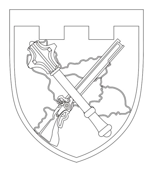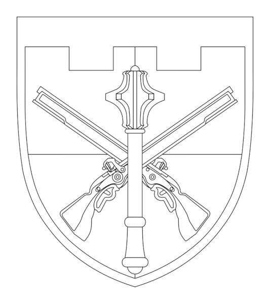 золотий пернач, покладений на схрещені козацькі мушкети. Хоча колір мушкетів в