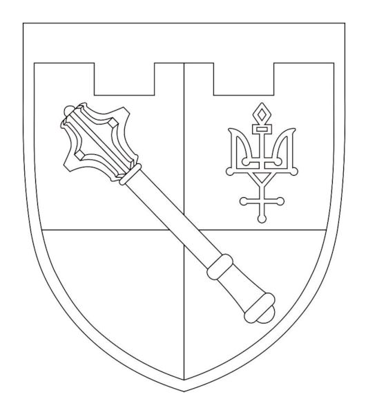 “геральдичного щита зелено-оливкового кольору із блакитною звуженою зубчатою