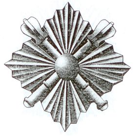 розміщувалося синє коло з ромбом, від якого розходяться промені. Носіння емблеми