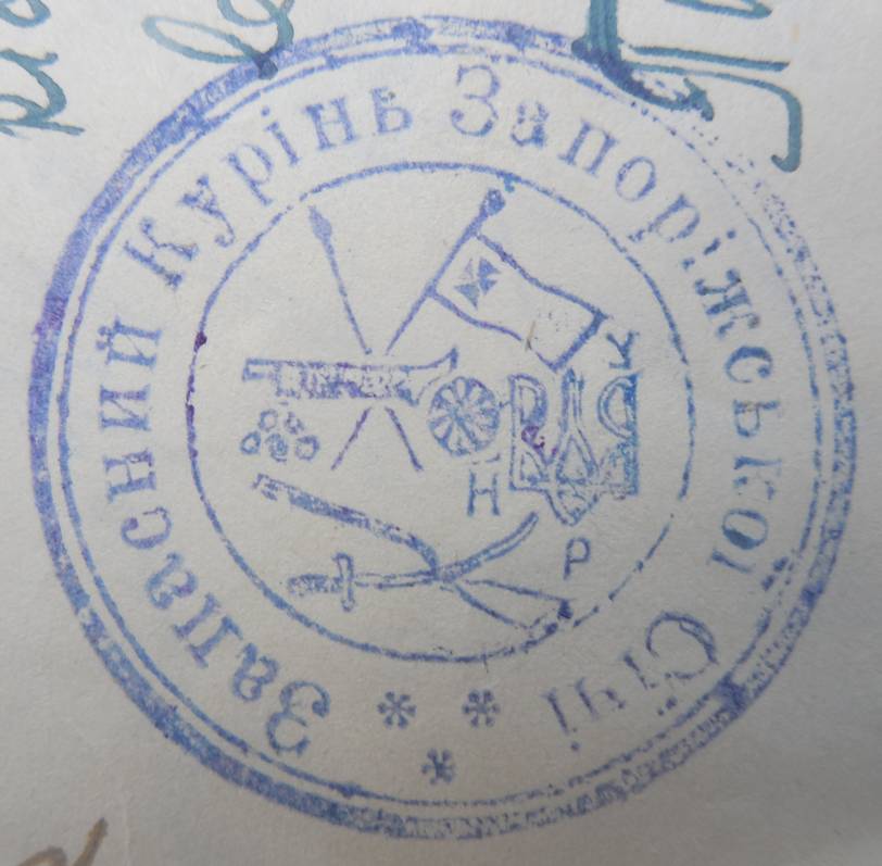штамп запасного куреня Запорізької Січі, відбитки яких виявлено на документах