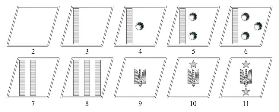 (мал. 3). У осіб ІХ, VIII та VII класів, крім смуги, на ромбі розміщувалися