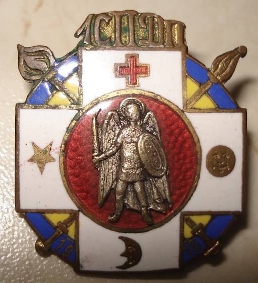 У жовтні минулого року в інтернеті обговорювалася цікава відзнака, яка появилася на одному з аукціонів (мал. 1). Висловлювалися також критичні припущення, що це якась фальшивка, оскільки досі вона ніде не зустрічалася. На нашу думку, при виготовленні фальшивки не було сенсу давати абревіатуру та ще й ставити клеймо виробника, яке зрештою вказувало на оригінальний виріб. Відзнака виконана у техніці “гарячої” емалі на високому якісному рівні. Зображення на ній синьо-жовтих стрічок та Архангела Михаїла наводили на думку, що знак виготовили на початку 1918 р., але ще до офіційного впровадження Тризуба як українського державного герба. Досить дивно виглядають два покладені навхрест елементи. Схоже, що за авторським задумом це мали бути дві булави чи булава і пернач, однак гравер, мабуть не зовсім зрозумівши зміст, зробив їх подібними на два смолоскипи. Микола Чмир звернув увагу на подібність символів з відзнаки і з прапора Першого січового Петра Дорошенка полку, який увійшов згодом до складу Синьожупанної дивізії. Цьому відповідала й абревіатура на знаку – “1ПСПД”. Проведені нами подальші дослідження дозволили підтвердити такі припущення.tc "У жовтні минулого року в інтернеті обговорювалася цікава відзнака, яка появилася на одному з аукціонів (мал. 1). Висловлювалися також критичні припущення, що це якась фальшивка, оскільки досі вона ніде не зустрічалася. На нашу думку, при виготовленні фальшивки не було сенсу давати абревіатуру та ще й ставити клеймо виробника, яке зрештою вказувало на оригінальний виріб. Відзнака виконана у техніці “гарячої” емалі на високому якісному рівні. Зображення на ній синьо-жовтих стрічок та Архангела Михаїла наводили на думку, що знак виготовили на початку 1918 р., але ще до офіційного впровадження Тризуба як українського державного герба. Досить дивно виглядають два покладені навхрест елементи. Схоже, що за авторським задумом це мали бути дві булави чи булава і пернач, однак гравер, мабуть не зовсім зрозумівши зміст, зробив їх подібними на два смолоскипи. Микола Чмир звернув увагу на подібність символів з відзнаки і з прапора Першого січового Петра Дорошенка полку, який увійшов згодом до складу Синьожупанної дивізії. Цьому відповідала й абревіатура на знаку – “1ПСПД”. Проведені нами подальші дослідження дозволили підтвердити такі припущення."