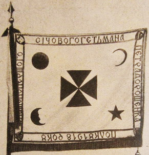 Відзнака та прапор Першого січового Петра Дорошенка полку