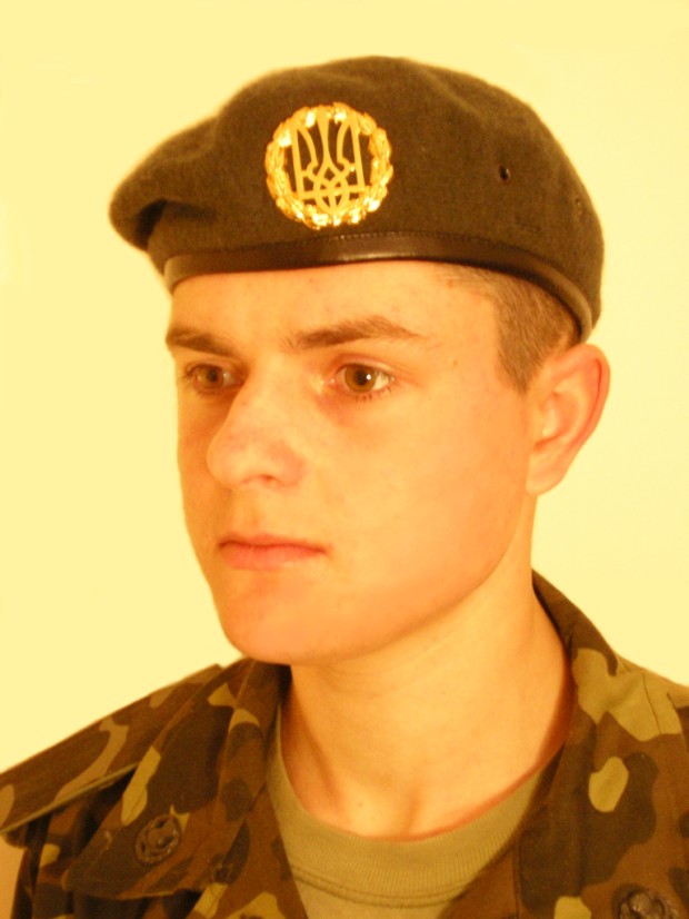 Фото військовослужбовця ЗСУ із запропонованим варіантом беретного знаку (натисніть на зображення, щоб побачити фотографію більшого розміру) |