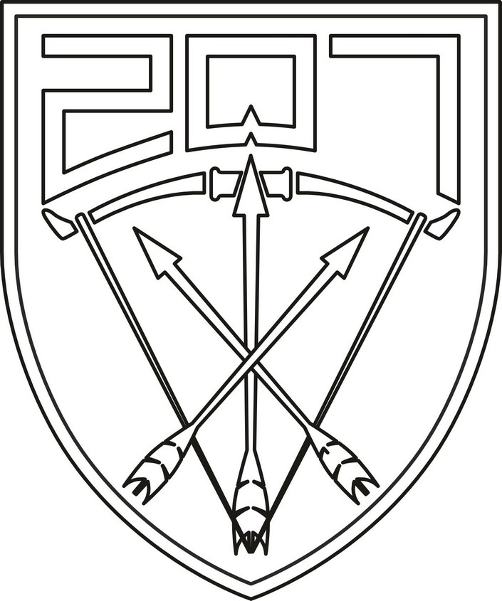 У 207-го окремого батальйону ТрО також існувало багато різних зразків, які, як видно, створювали самі бійці на свій смак. Остаточно символом частини стала емблема, на які зображено натягнутий лук разом із трьома стрілами, ну і з номером частини “207” (мал. 11).