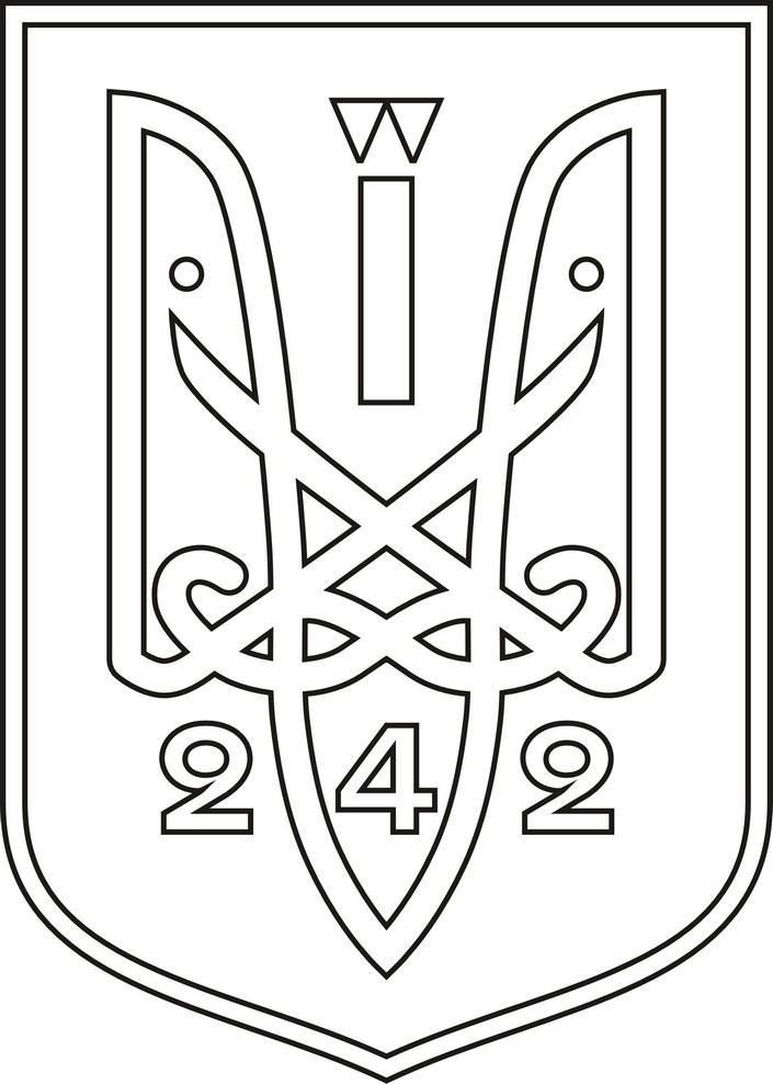 242-й окремий батальйон ТрО серед декількох зразків вибрав для себе нарукавну емблему, на якій зображений стилізований Тризуб та номер частини (мал. 12).