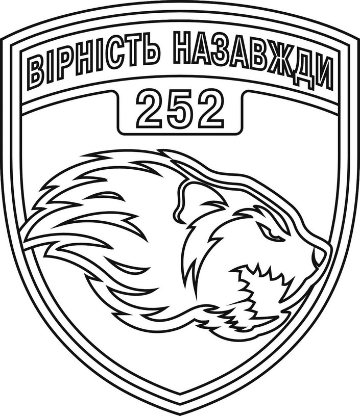 252-й окремий батальйон ТрО (який також носив назву штурмового батальйону “Шторм” через те, що його створили ветерани морської піхоти) спочатку мав емблему з символами української морської піхоти. В подальшому її замінили на зображення хижого звіра з номером частини та з девізом “ВІРНІСТЬ НАЗАВЖДИ”, яким став дещо видозмінений девіз морської піхоти “Вірний завжди” (мал. 16).