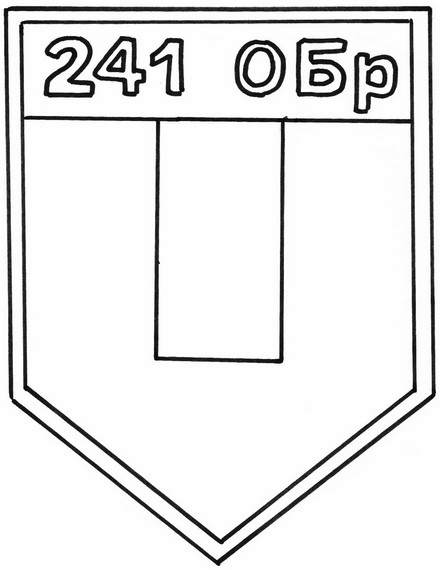 Бригада та всі її батальйони отримали власну нарукавну емблематику. Першою в бригаді стала нарукавна емблема 130-го окремого батальйону ТрО, який створив її ще до початку війни, відразу після сформування (мал. 1). Так як бригада фактично формувалася на базі цього батальйону, то його емблема й була взята за основу для символу 241-ї окремої бригади ТрО. Але для того, щоби не плутати бригаду та батальйон, лук в емблемі 241-ї бригади отримав тятиву (мал. 2), на відміну від батальйону, де лук такого елемента не має. До речі, на початку були варіанти емблеми 130-го окремого батальйону ТрО, на яких лук малювали від краю до краю щита, а зубці стіни (символ належності до територіальної оборони) малювали дещо інакше, ніж на всіх інших емблемах (мал. 3). Мабуть ця емблема була офіційно затверджена. Проте у варіантах, які виготовляли для себе бійці батальйону, на ній з’явився номер (“130”), якого на затвердженому малюнку немає (мал. 4). Крім того існувала й інша емблема 241-ї бригади ТрО, на якій був зображений так званий логотип Сил територіальної оборони Збройних Сил України (мал. 5).