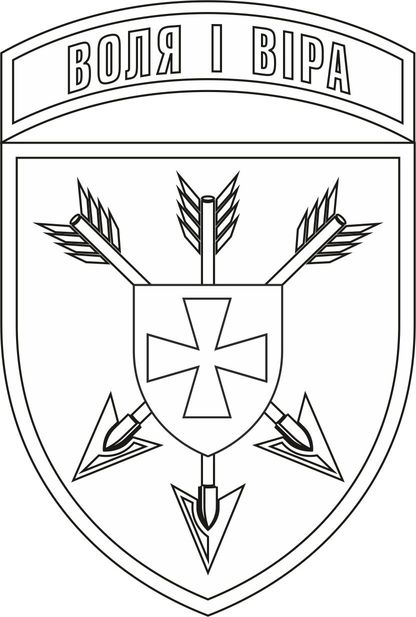стрічці даний девіз частини “ВОЛЯ І ВІРА”.